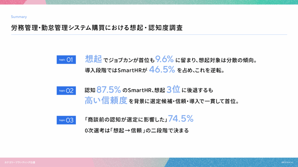 カテゴリーブランディング白書 vol.9 ~労務管理・勤怠管理システムにおける想起・認知 調査~